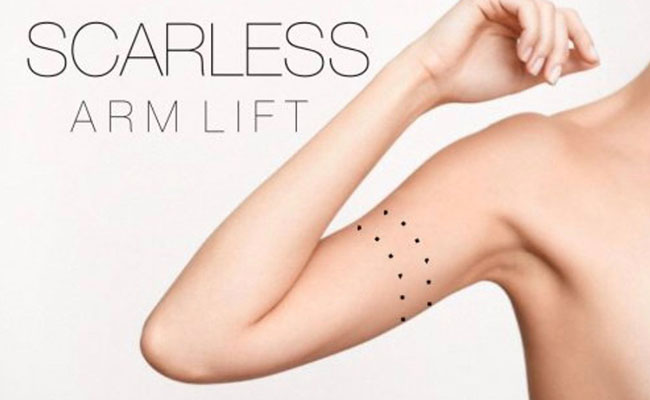 Scarless Arm Lift results in circumferential skin tightening of the entire upper arm. Clinical studies show noticeable skin tightening immediately with continued contraction over the course of 6 months to a year after the initial procedure. The procedure is done in the under local anesthetic with quick recovery and under the safest conditions.