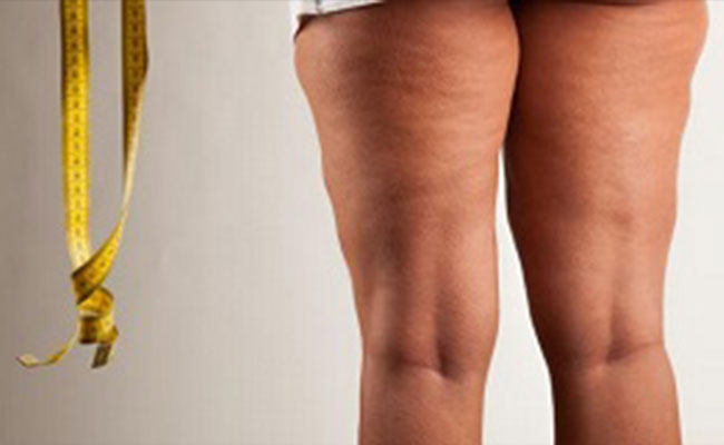 - Fat pads above, inside and below knees, and in outer region of upper thighs 1